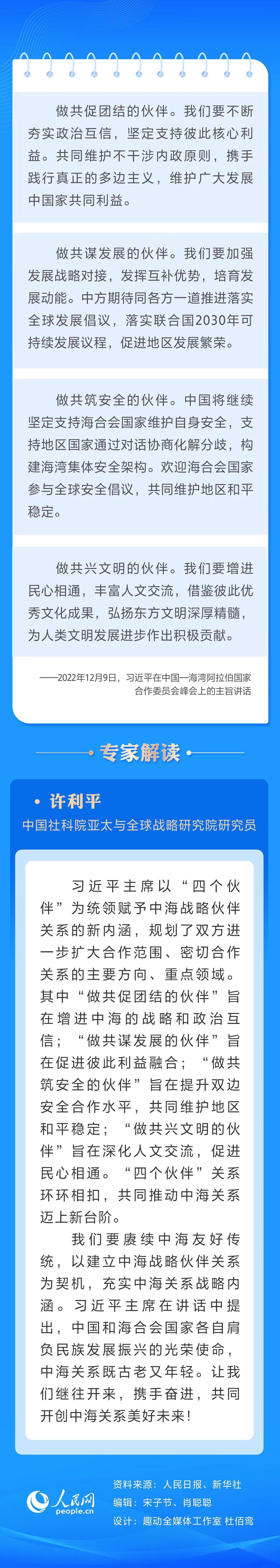 当地时间12月9日下午,首届中国—海湾阿拉伯国家合作委员会峰会在利雅得阿卜杜勒阿齐兹国王国际会议中心举行。国家主席习近平出席峰会并发表题为《继往开来,携手奋进 共同开创中海关系美好未来》的主旨讲话。人民网梳理习近平主席围绕中海战略伙伴关系提出的四点主张并邀请专家解读。