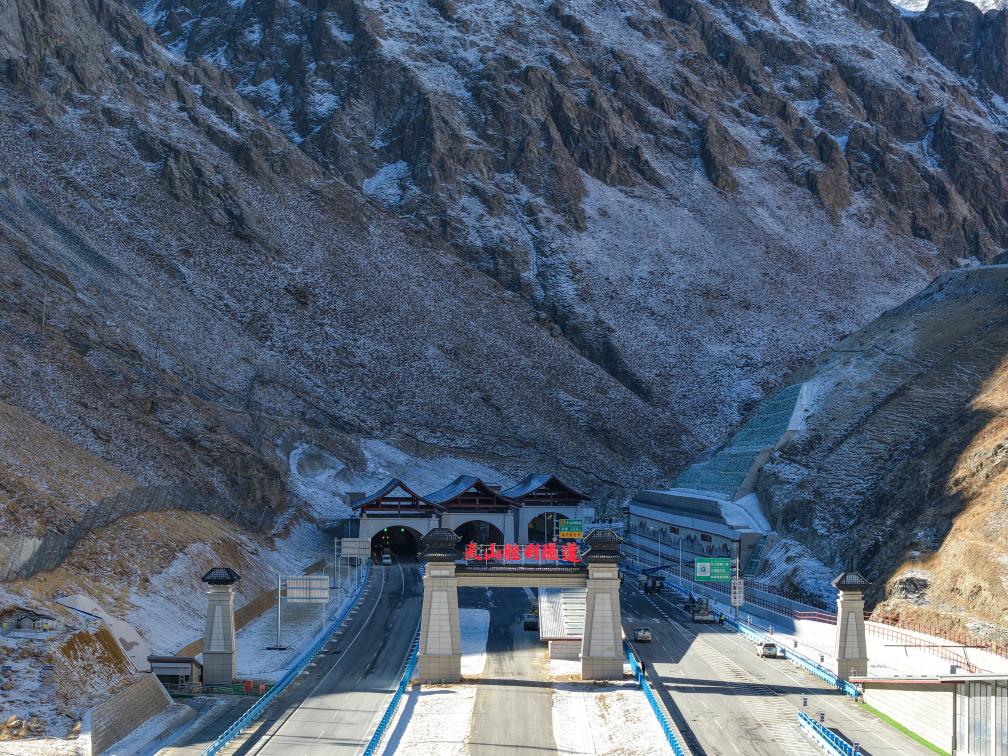 乌尉高速公路后峡隧道(左)与哈熊沟隧道相连(2025年12月23日摄)。新华社记者 胡虎虎 摄