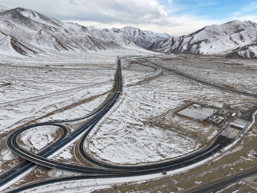 这是在新疆和静县拍摄的乌尉高速公路阿拉沟互通(2025年12月20日摄)。新华社记者 胡虎虎 摄