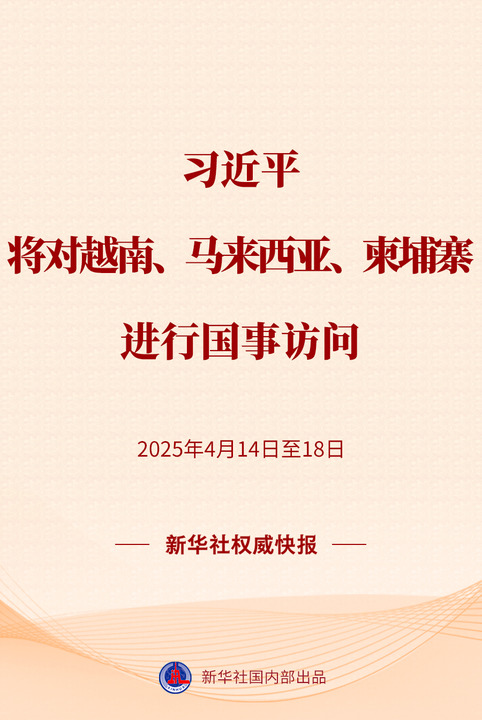 新华社快讯:习近平将对越南、马来西亚、柬埔寨进行国事访问。
