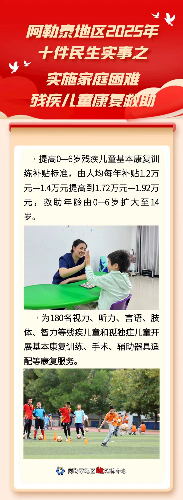 海报 | 阿勒泰地区2025年十件民生实事之实施家庭困难残疾儿童康复救助