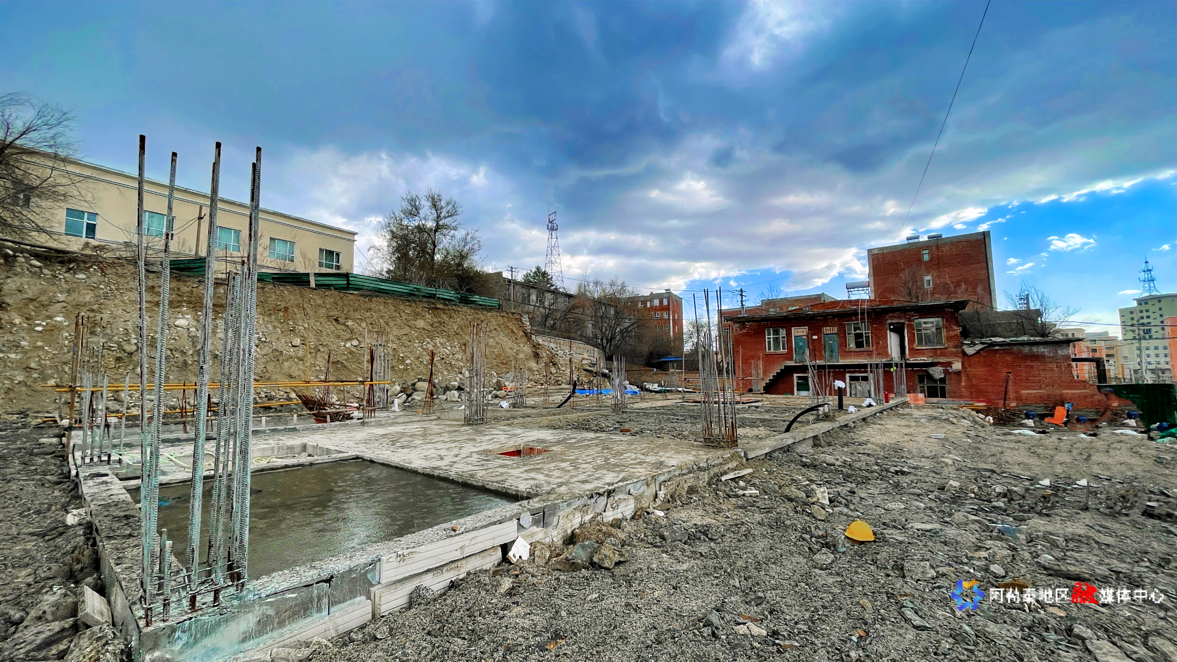 解放路社区的养老服务建设项目打地基中。 实习记者 叶丽娜·努坤 摄