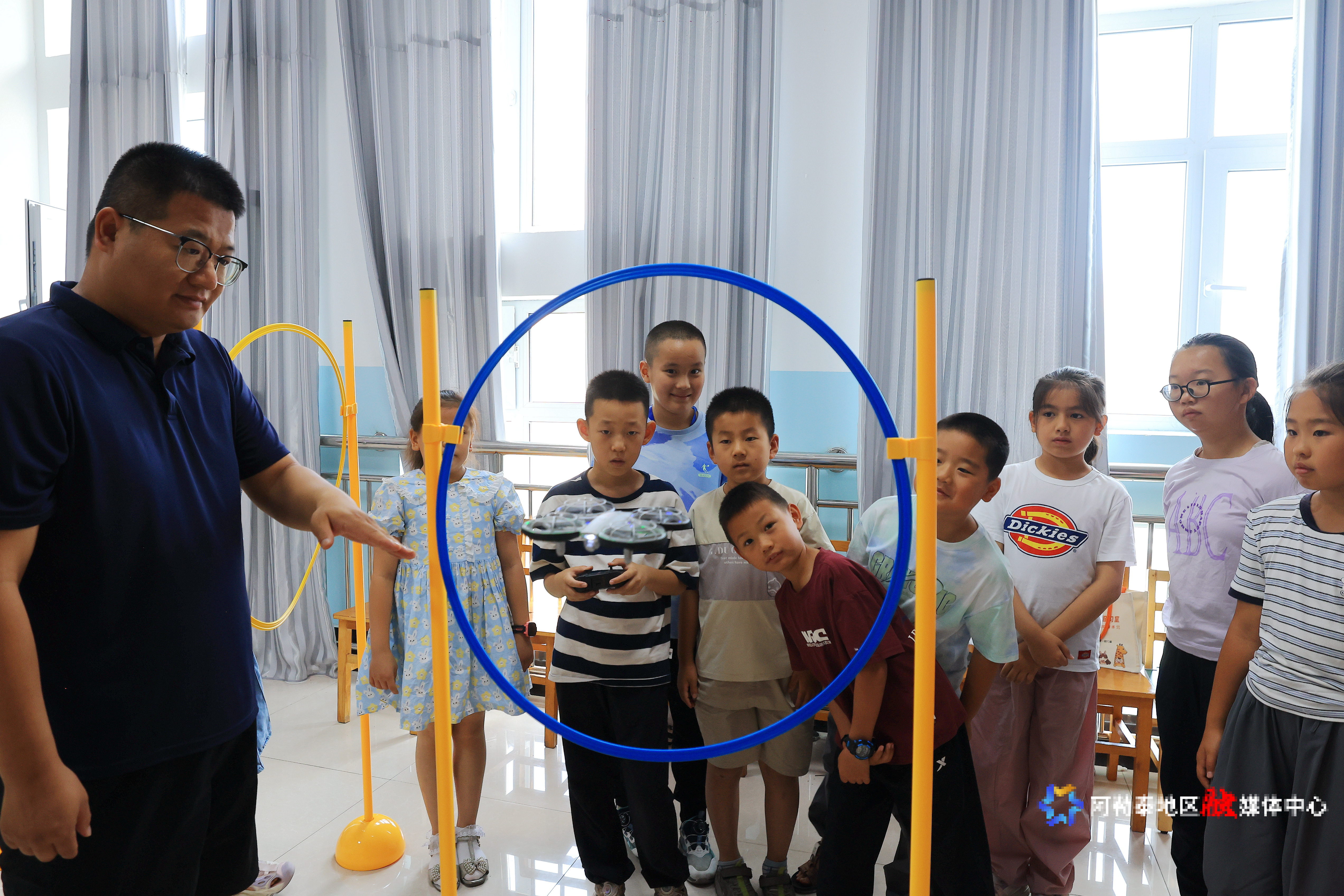 2025年7月11日,在阿勒泰市青少年活动中心,学生在体验操控无人机。记者 阿尔达克·拜斯汗 摄