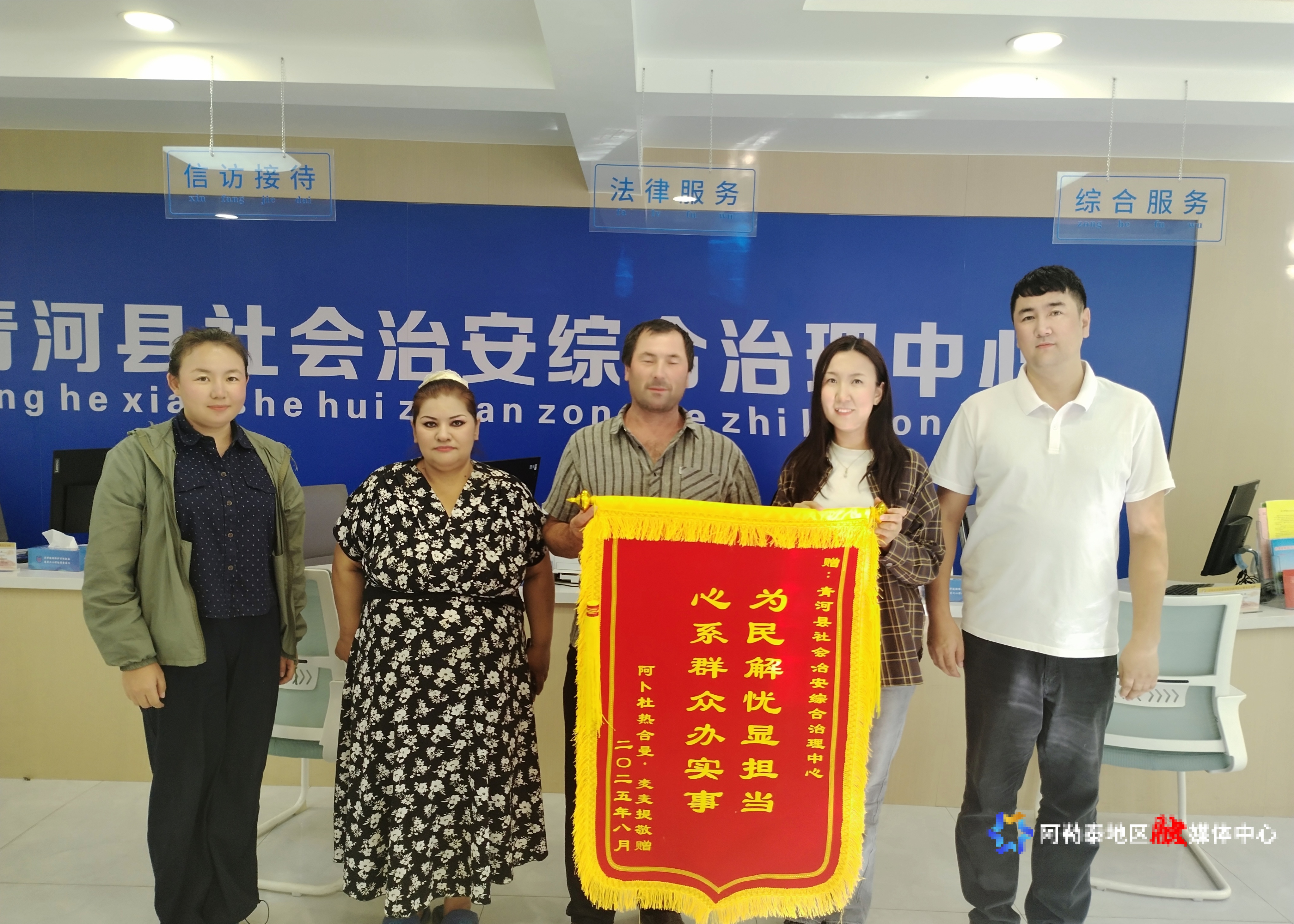 阿勒泰新闻网-阿勒泰地区融媒体中心(记者 杨玮璇 通讯员 秦晓攀)8月6日下午,青河县综治中心大厅内欢声笑语,“太谢谢你们了,你们像家人一样对我们,不知道该怎么感谢……”来自和田的阿某和妻子紧紧握住工作人员的手,将一面崭新的锦旗郑重递上。这面锦旗背后,是一个跨越千里、一波三折的维权故事,更是青河县综治中心践行新时代“枫桥经验”、为民纾困解忧的生动注脚。