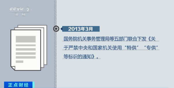 2013年3月,国务院机关事务管理局等五部门联合下发《关于严禁中央和国家机关使用“特供”“专供”等标识的通知》。
