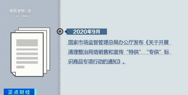 2020年9月,国家市场监督管理总局办公厅发布了《关于开展清理整治网络销售和宣传“特供”“专供”标识商品专项行动的通知》。