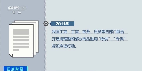 记者了解到,早在2011年,我国工商、工信、商务、质检等四部门就联合开展了清理整顿部分商品滥用“特供”“专供”标识专项行动。