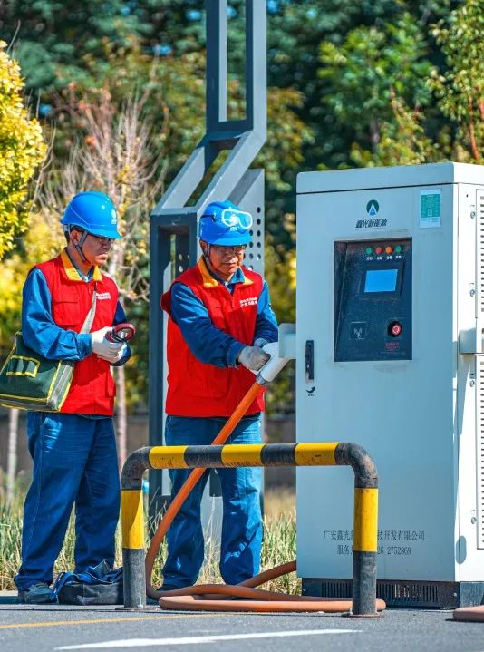 党员服务队为新能源汽车充电。摄影师@成超