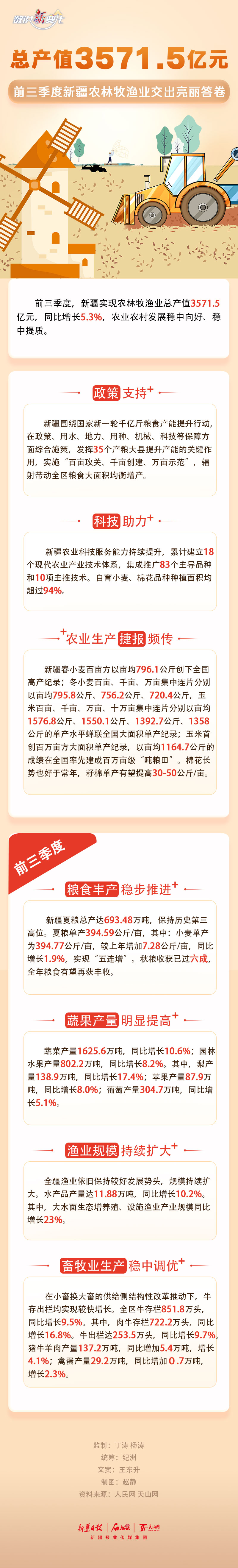 数说“新”变化丨总产值3571.5亿元!前三季度新疆农林牧渔业交出亮丽答卷
