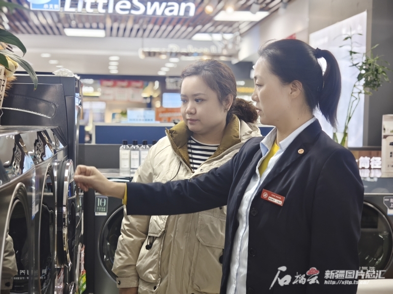 11月18日,在乌鲁木齐市米东区一家家电门店,消费者正在选购洗衣机。杨乔一摄