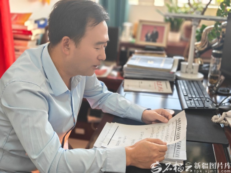 马小亮翻看游客的感谢信。天山网-新疆日报记者 范琼燕摄