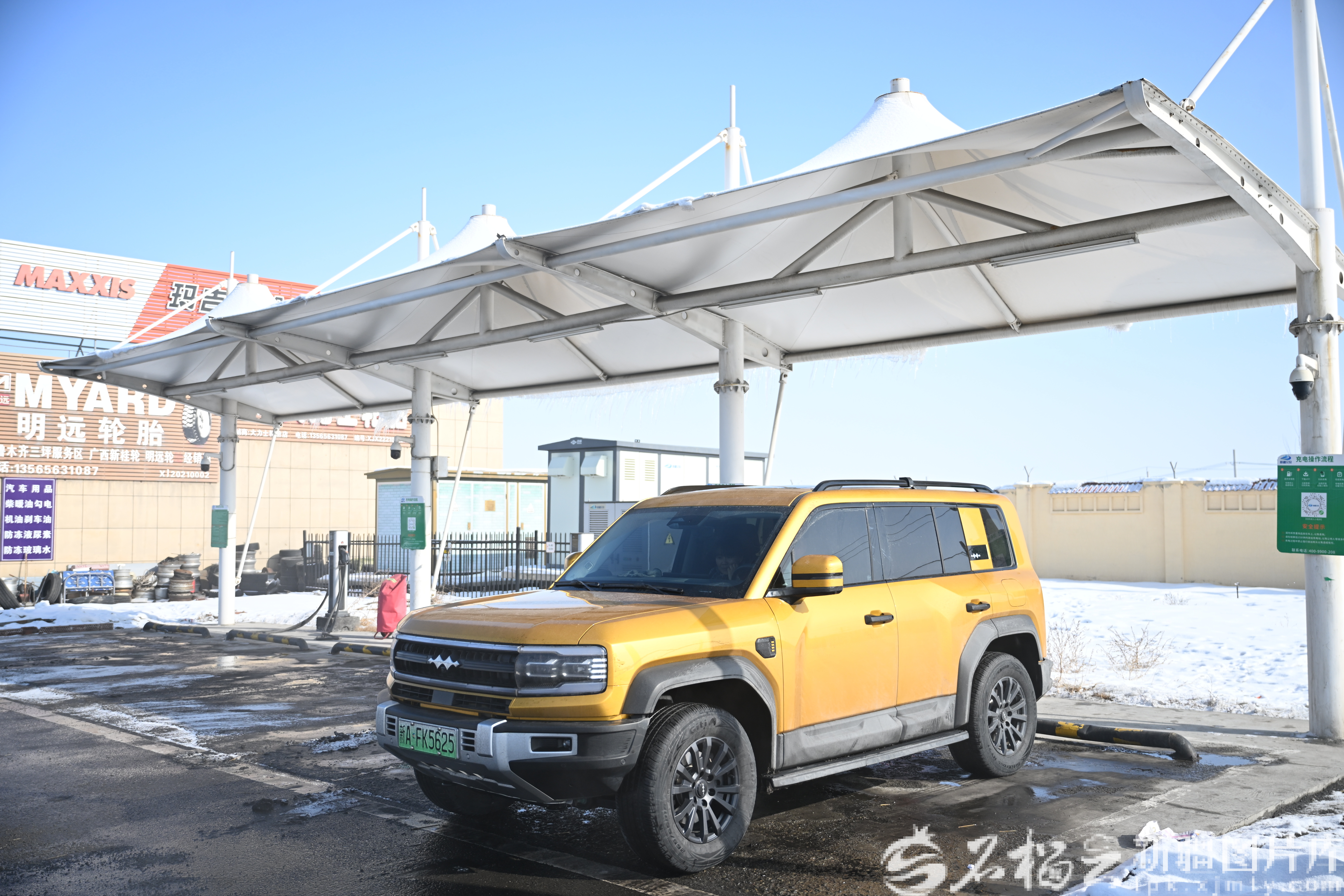 2月9日,车辆在G30连霍高速三坪服务区内充电。天山网-新疆日报记者 逯风暴摄